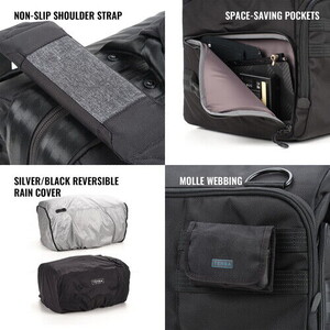 V2 tasarımındaki yükseltmeler arasında gizli bir AirTag cebi, çantanın dışında MOLLE dokuma, kilitlenebilir fermuarlar ve ekipmanınızı zor doğa koşullarından korumak için, ters çevrilebilir bir yağmurluğu vardır.